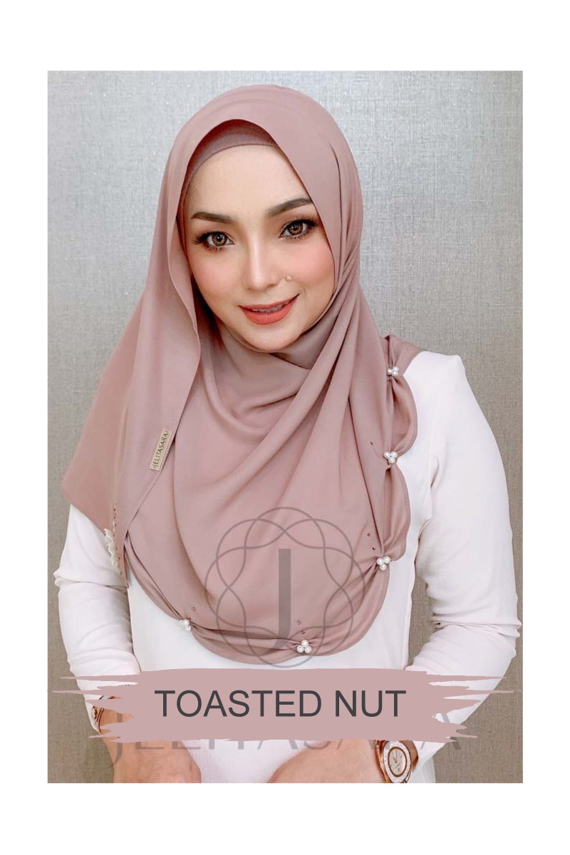 Tudung Instant Shawl Sara Pearl Swarovski Toasted Nut
