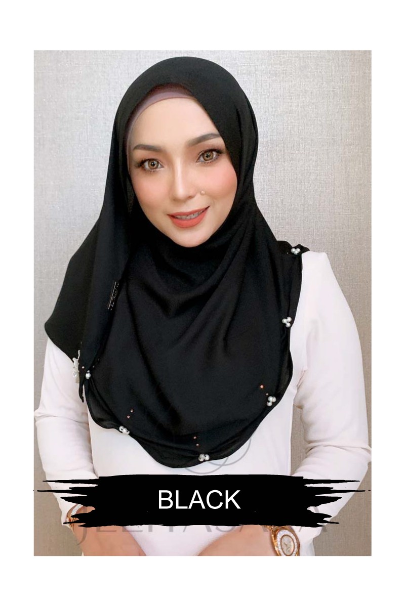 Tudung Instant Shawl Sara Pearl Swarovski Black